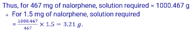 Q – 2.29. Nalorphene (C19H21NO3), similar to morphine, is used to combat withdrawal symptoms in narcotic user. Dose of nalorphene generally given is 1.5 mg. Calculate the mass of 1.5 × 10-3 m aqueous solution required for the above dose.